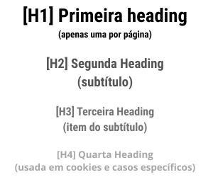 Essa estrutura é feita com títulos e subtítulos que organizam os blocos de texto, melhoram a escaneabilidade e ajudam os mecanismos de busca a entenderem o que cada parte do conteúdo quer comunicar. Chamamos no mundo do SEO essas estruturas de Heading Tags e a partir delas conseguimos criar conteúdps ricos e com potencial de “rankeamento”.